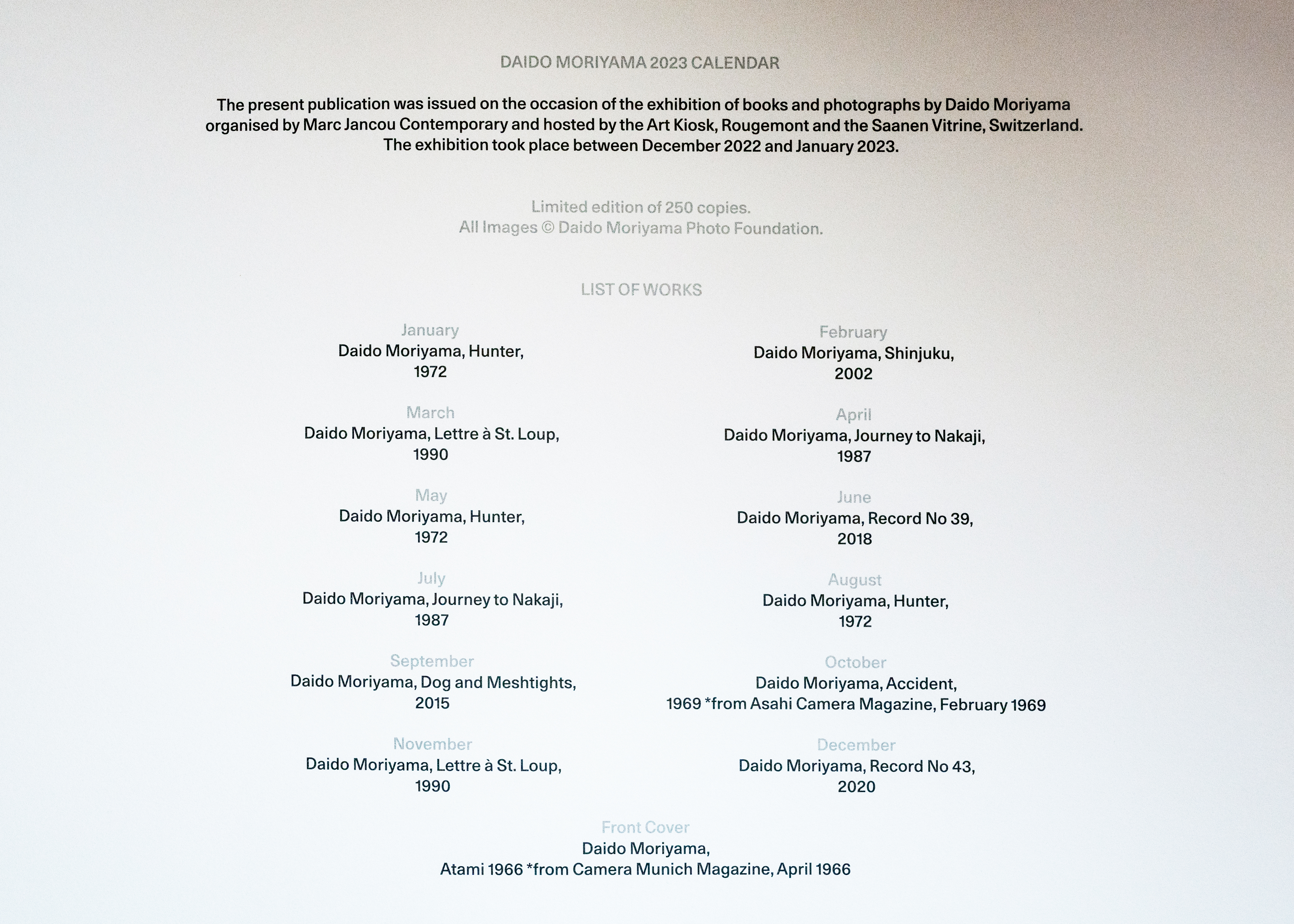 Daido Moriyama Calendar