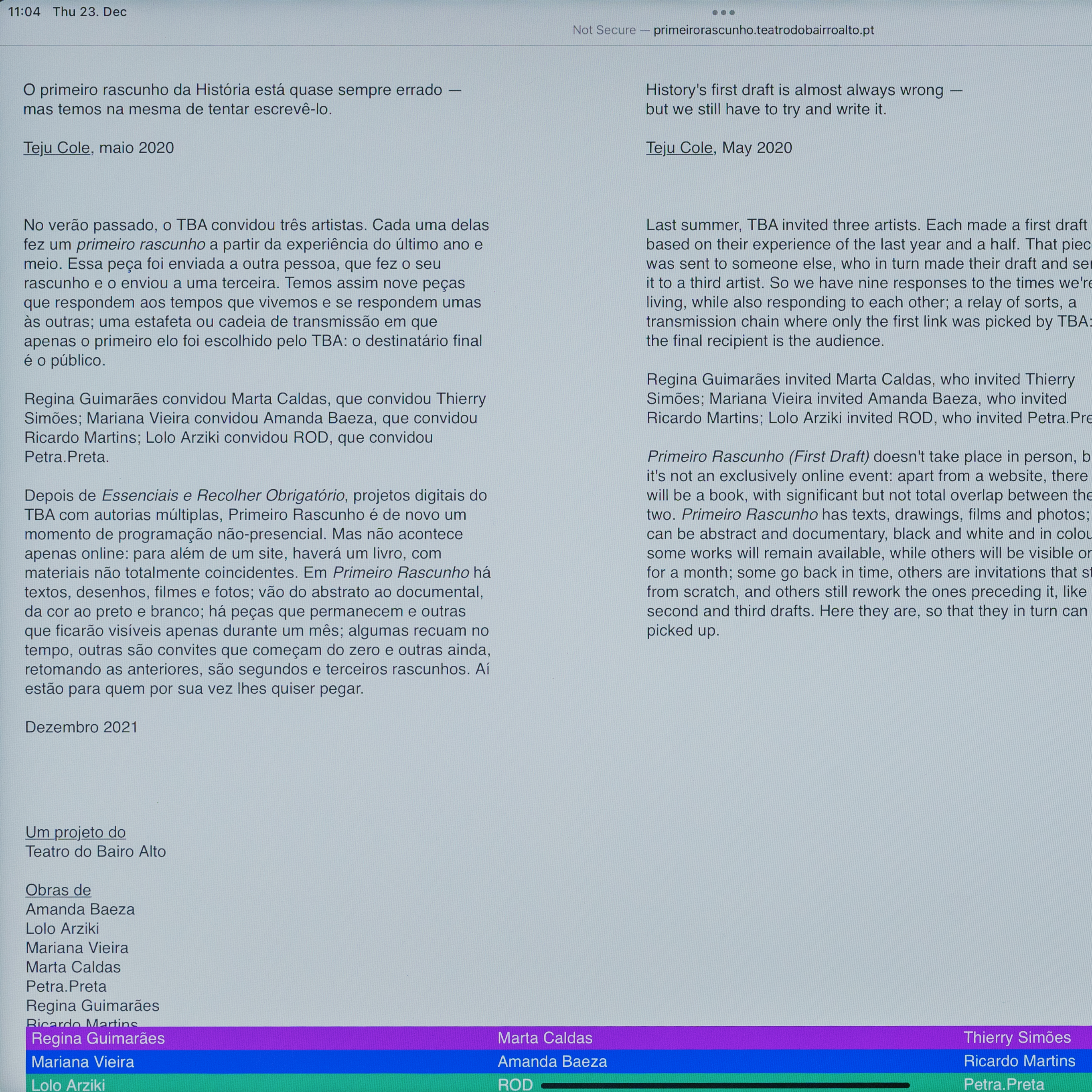 Teatro do Bairro Alto, 2022, Website